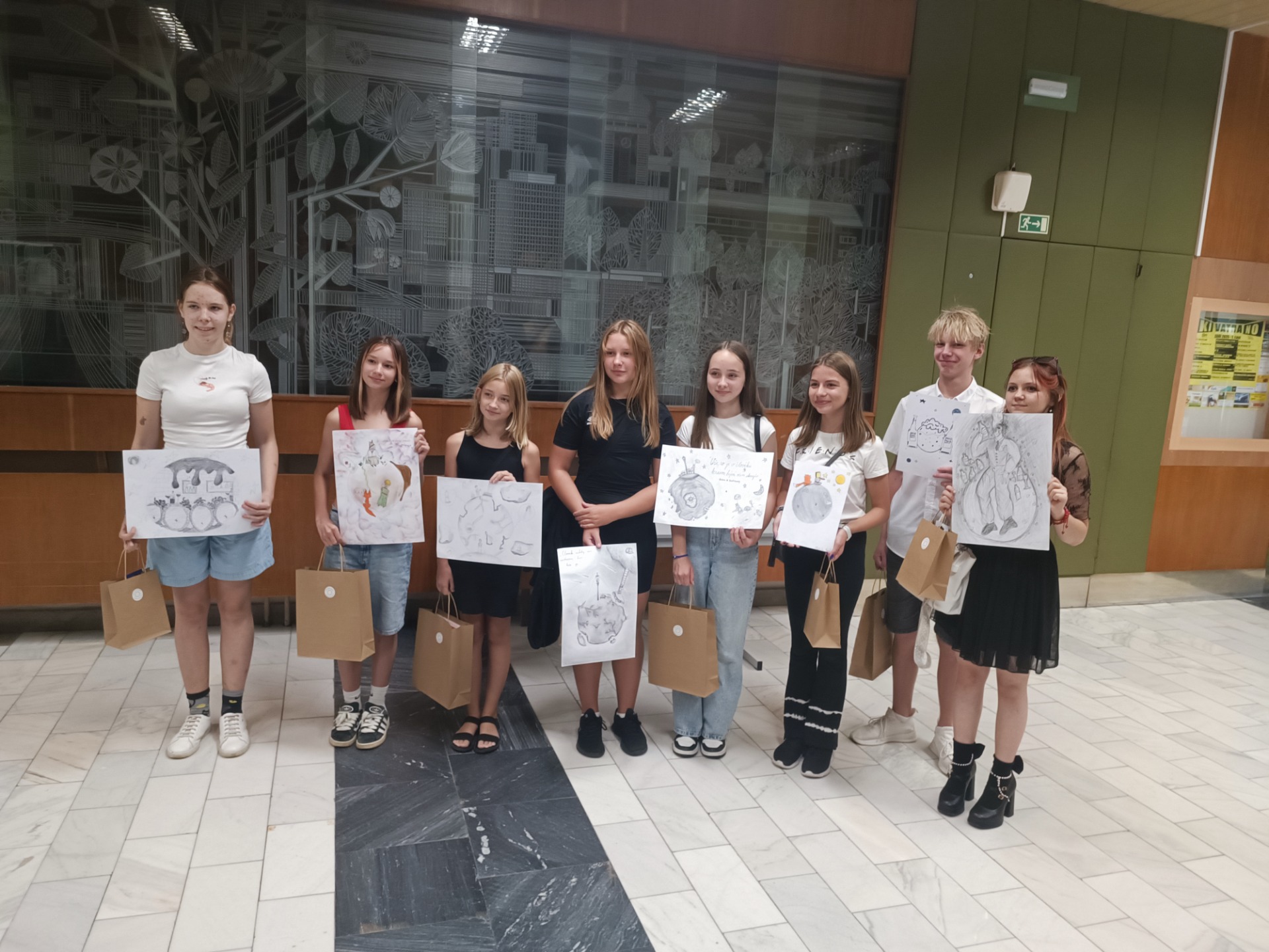 Vyhlášení soutěžních prací však proběhlo až v pondělí 8. 9. 2025 ve foyer kina Vatra Vsetín v rámci výstavy Malé světy, velké příběhy u příležitosti Dnů duševního zdraví, kde bylo celkem oceněno osm žáků naší školy, přestože všechny práce byly velmi nápadité a originální.