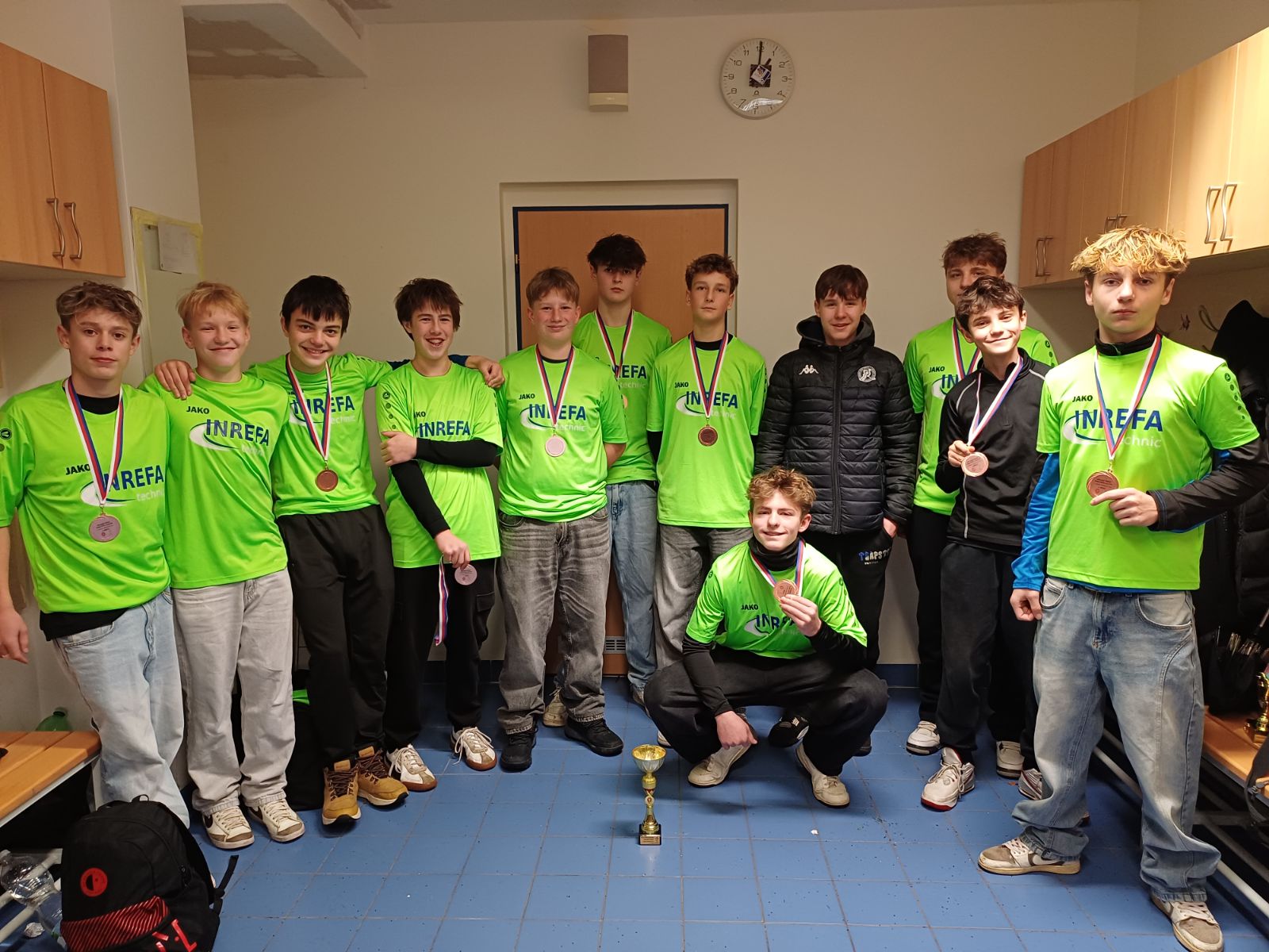 25. listopadu za deštivého a mrazivého počasí cestovali naši kluci do Otrokovic na krajské kolo fotbalu starších žáků. V deštivém počasí v konkurenci dalších tří týmů ( z každého okresu zlínského kraje postoupilo pouze jedno družstvo) se umístili na krásném třetím místě, k velkému úspěchu gratulujeme!