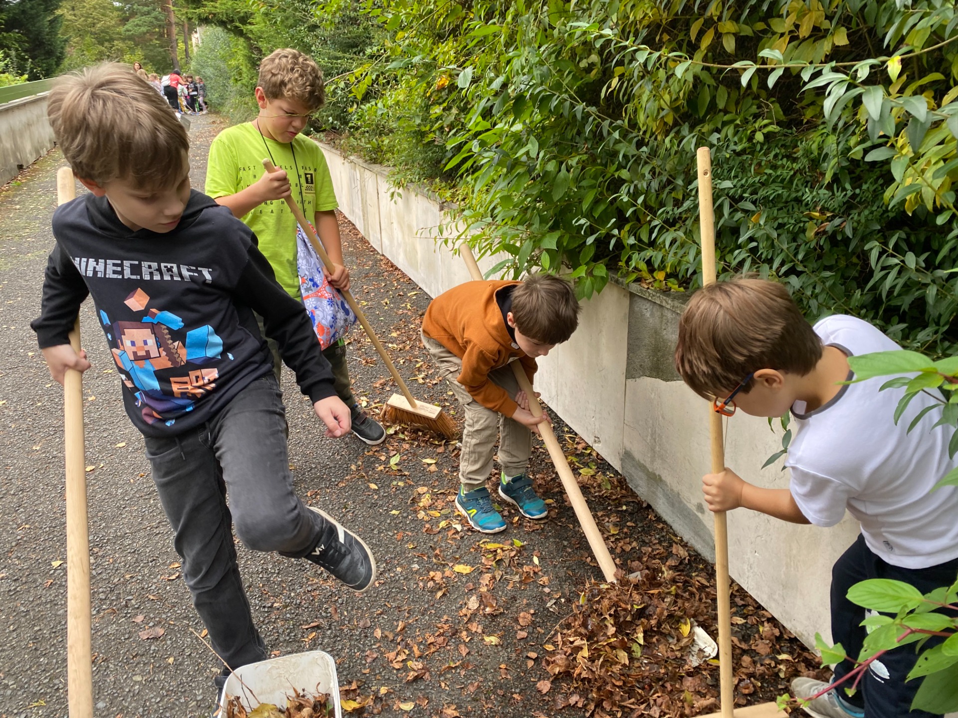 Svišti pomohli panu školníkovi uklidit prostor před školou.