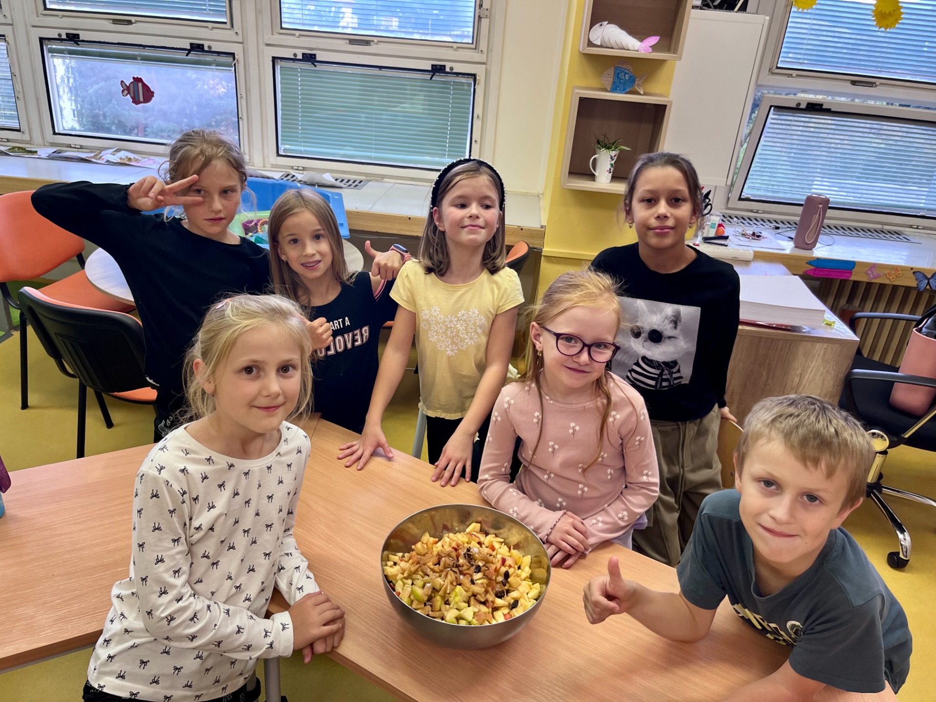Ve středu 1.10 jsme s naši družině Rybiček prožili podzimní den s vůní jablíček. Děti krájely a ochutnávaly naše tradiční české ovoce. Společně jsme přichystali "Jablíčkový pečený čaj ".Chuť a vůně čaje se skořicí vykouzlila dětem úsměv na tváři.