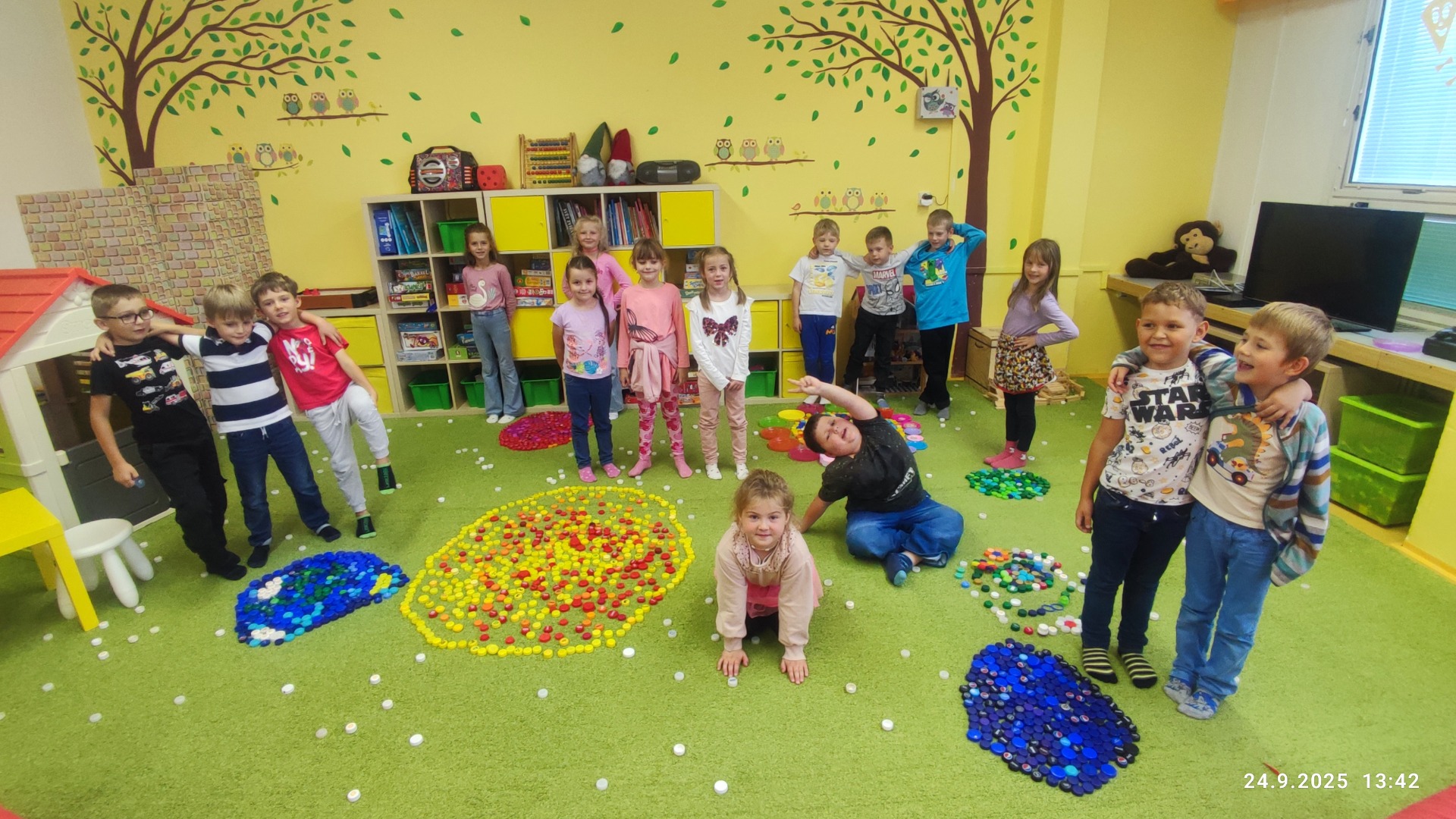 V rámci celoroční družinové hry Barevné ostrovy je měsíc září Ostrov slunce. My jsme si na toto téma zašli popovídat na hvězdárnu a vesmír jsme si vytvořili i v družině z recyklovatelných víček.